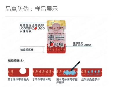 A.用钢笔或其他彩色笔在防伪标识上划写涂抹,然后用手或其他物品擦干,则在防伪标识有企业要求图案部分由于颜料进入到微孔结构中,留下相应的颜色,而在没有图案部分不留下任何颜色。